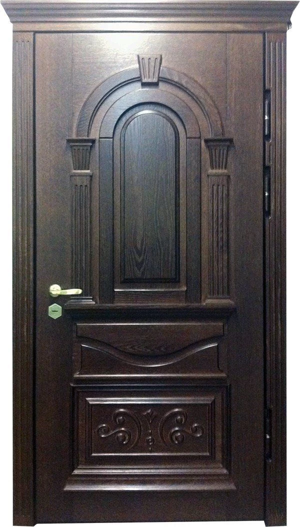Поговорим об отделке. Вариантов декора дверей много. В большинстве случаев, для отделки элитных дверей используется массив натурального дерева или натуральный шпон с фрезеровкой. Цвет двери так же делается по желанию заказчика. Очень красиво и представительно выглядят двери с ковкой и стеклом.