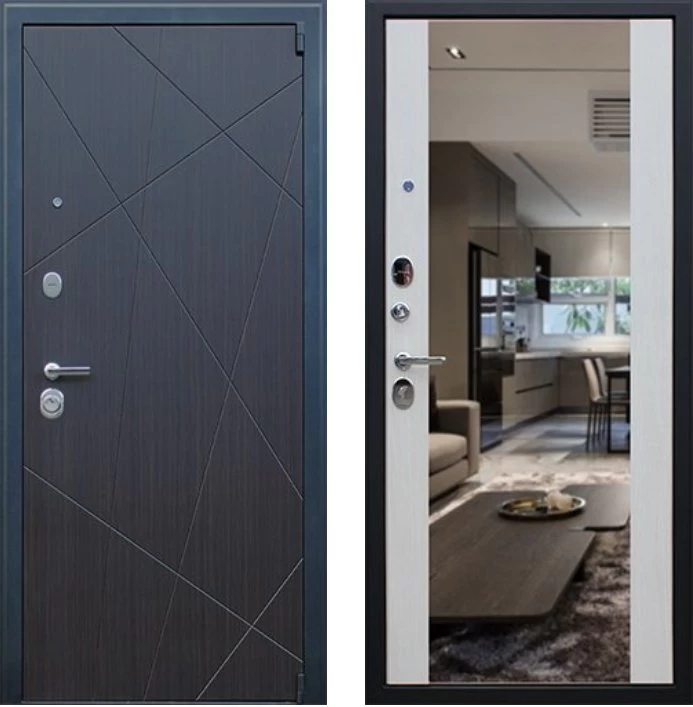 Надежная входная Дверь Вектор с зеркалом премиум класса по цене 48 381 руб. Большая толщина стали защитит от проникновения в ваш дом, квартиру или коттедж. Используется очень качественная фурнитура: замки, цилиндры, ручки, защелки. Покрытие и отделка двери изготовлено под внимательным контролем производителя. Дверь имеет долгий срок службы и гарантию.