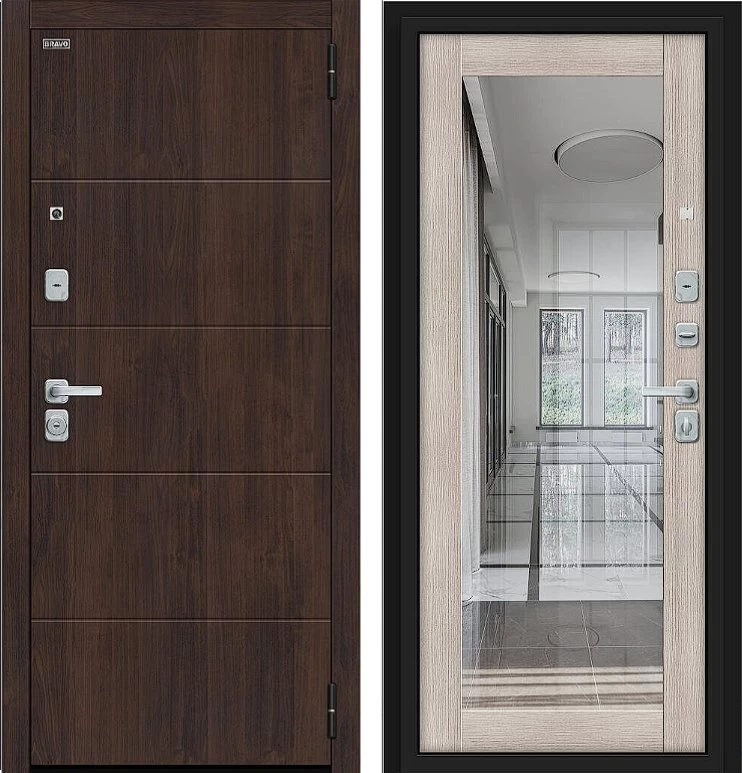 Надежная входная Дверь Браво Флэт/BChrome Almon/Cappuccino Melinga премиум класса по цене 41 931 руб. Большая толщина стали защитит от проникновения в ваш дом, квартиру или коттедж. Используется очень качественная фурнитура: замки, цилиндры, ручки, защелки. Покрытие и отделка двери изготовлено под внимательным контролем производителя. Дверь имеет долгий срок службы и гарантию.