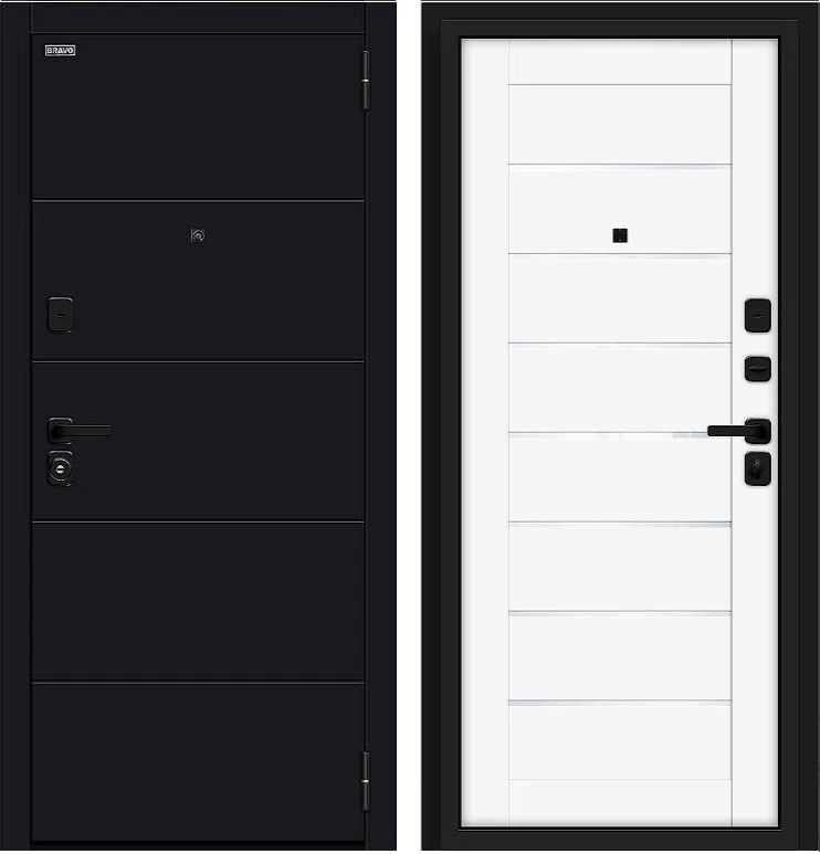 Надежная входная Дверь Браво Прайм/SBlack-Black Shell/White Silk премиум класса по цене 39 531 руб. Большая толщина стали защитит от проникновения в ваш дом, квартиру или коттедж. Используется очень качественная фурнитура: замки, цилиндры, ручки, защелки. Покрытие и отделка двери изготовлено под внимательным контролем производителя. Дверь имеет долгий срок службы и гарантию.